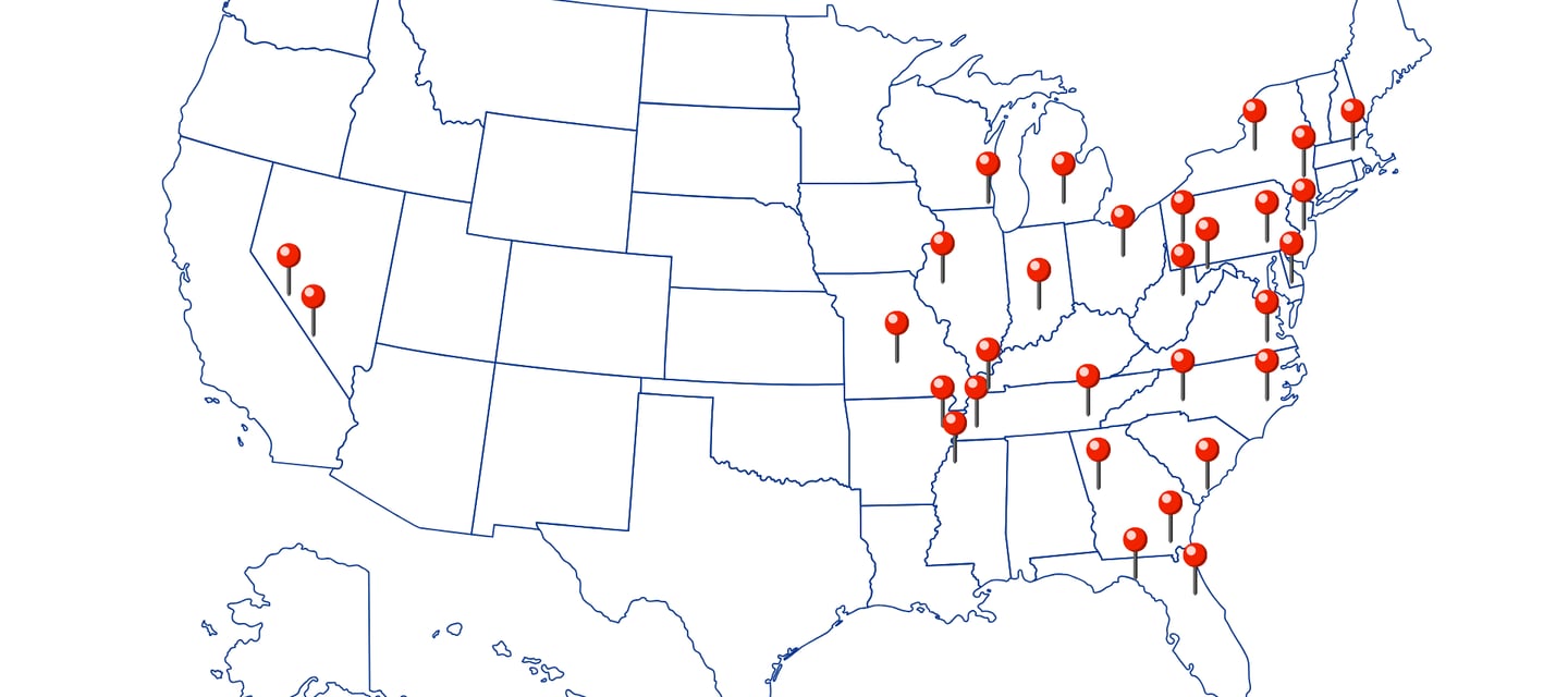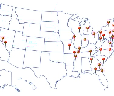 This is a map of the United States with pins showing where I have been